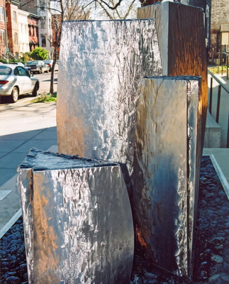 نافورة شلال منحوتة من الفولاذ المقاوم للصدأ المعدني في الهواء الطلق للحديقة لتزيين