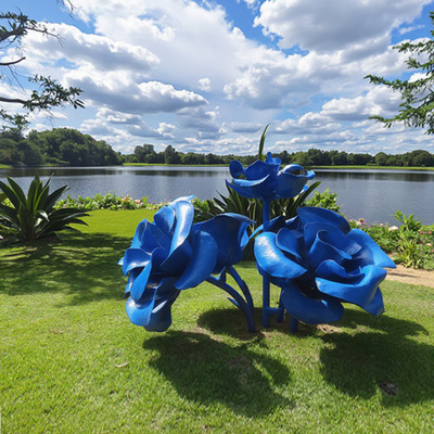 هذه المنحوتات الكبيرة من الورود الزرقاء المرسومة هي مزيج مذهل من الفن والطبيعة. وضعت على ضفاف بحيرة الحديقة ، وتبرز بشكل واضح ضد العشب الأخضر والمياه الهادئة.اللون الأزرق الساطع يجلب لمسة من الخيال والحيوية، وتحويل الحديقة إلى ملاذ فني حيث يمكن للناس تقدير جمال الفن والبيئة الطبيعية المحيطة بها..