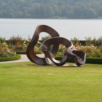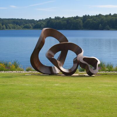 This abstract metal sculpture is a symphony of fluid curves and bold geometric twists, forged from high-grade corten steel to capture the harmony between industrial material and natural landscape. Its organic, looping form evokes the endless flow of nature’s energy, making it a striking focal point for gardens, parks, and corporate campuses. Designed to withstand all weather conditions, the corten steel develops a unique rust patina over time, blending seamlessly with greenery and outdoor surroundings.