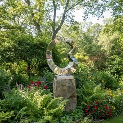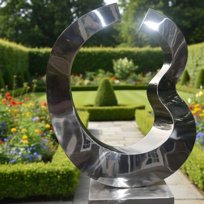 يتميز هذا النحت المعاصر بشكل سائل ومجرد مصنوع من الفولاذ المقاوم للصدأ المصقول عالي الجودة. يخلق سطحه العاكس تفاعلاً ديناميكيًا مع الضوء والمحيط، مما يجعله نقطة محورية مذهلة لأي حديقة أو حديقة أو منظر طبيعي.
