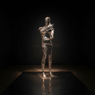 This striking modern indoor decor statue features a handcrafted stainless steel figure with intricate mesh detailing. Perfect for gallery exhibitions, luxury lobbies, or contemporary homes. Its expressive form invites contemplation and elevates any space with artistic sophistication. A true conversation piece for discerning collectors and designers.